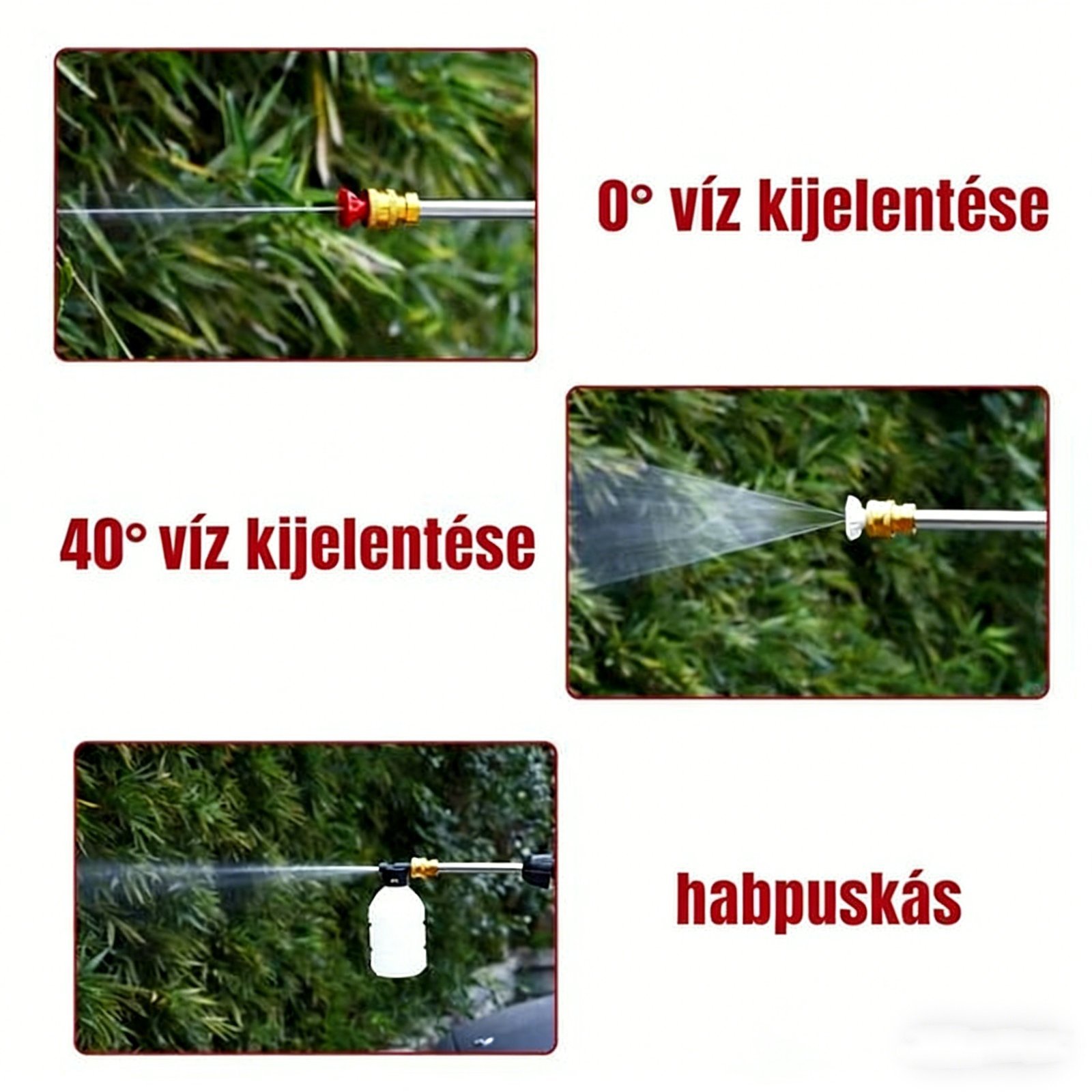 T?bb f¨²v¨®ka fej k?z?tt v¨¢laszthatok (rugalmas, er?s, finom sz¨®r¨¢s), ak¨¢r az aut¨® fel¨¹let¨¦t, ak¨¢r a gumiszersz¨¢mokat, ak¨¢r a kerted n?v¨¦nyeit is el lehet ÅçË® olni.